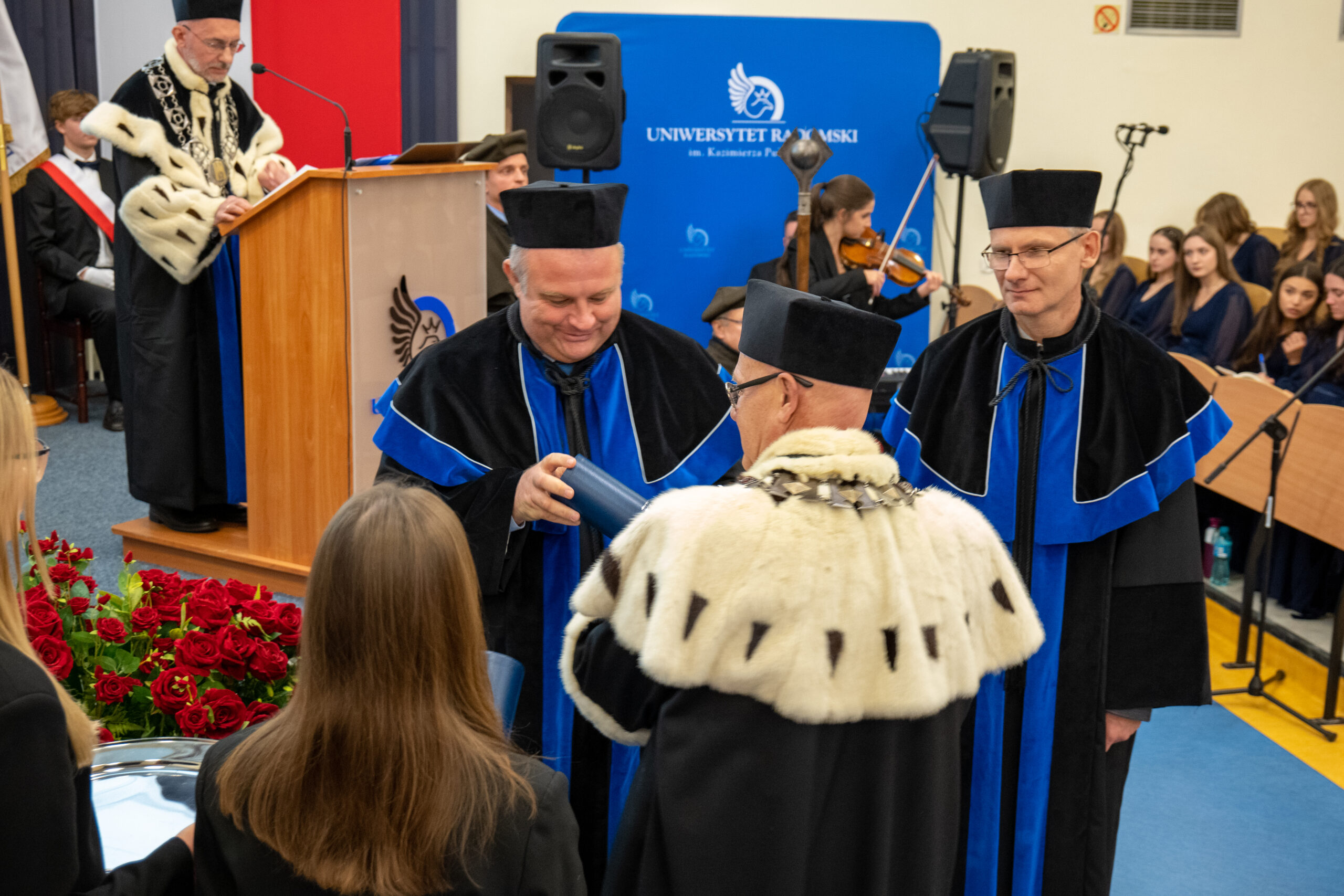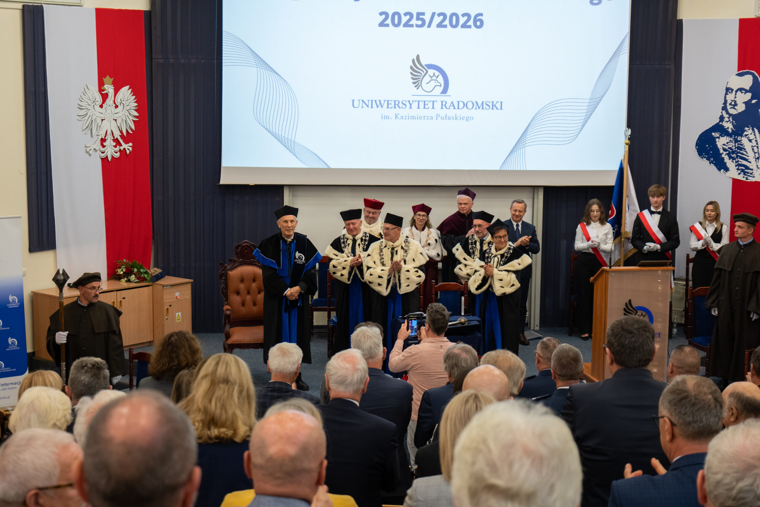 W dniu 2 października odbyła się uroczysta inauguracja roku akademickiego 2025/2026 w Uniwersytecie Radomskim im. Kazimierza Pułaskiego. Swoją obecnością uroczystość uświetnili znamienici goście między innymi Pan Marcin Iskra – Dyrektor Generalny Ministerstwa Nauki i Szkolnictwa Wyższego, przedstawiciele władz samorządowych Pan Patryk Fajdek – Wicewojewoda Mazowiecki, wiceprezydent Radomia Pan Łukasz Molenda, Pan prof. Mansur Rahnama-Hezavah – Sekretarz Rady Doskonałości Naukowej, przedstawiciele zaprzyjaźnionych uczelni, prezesi spółek i firm oraz wiele innych znamienitych osób.