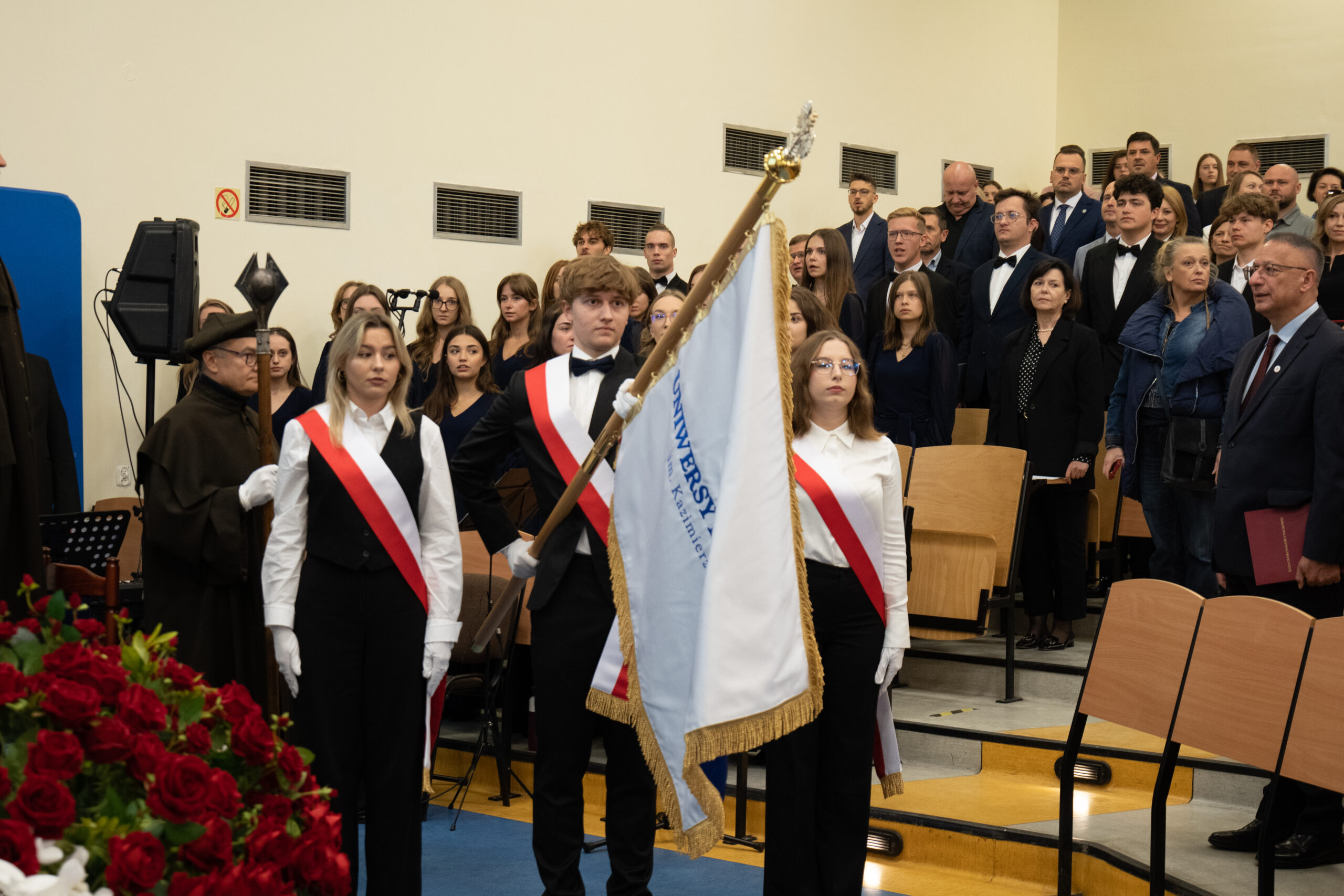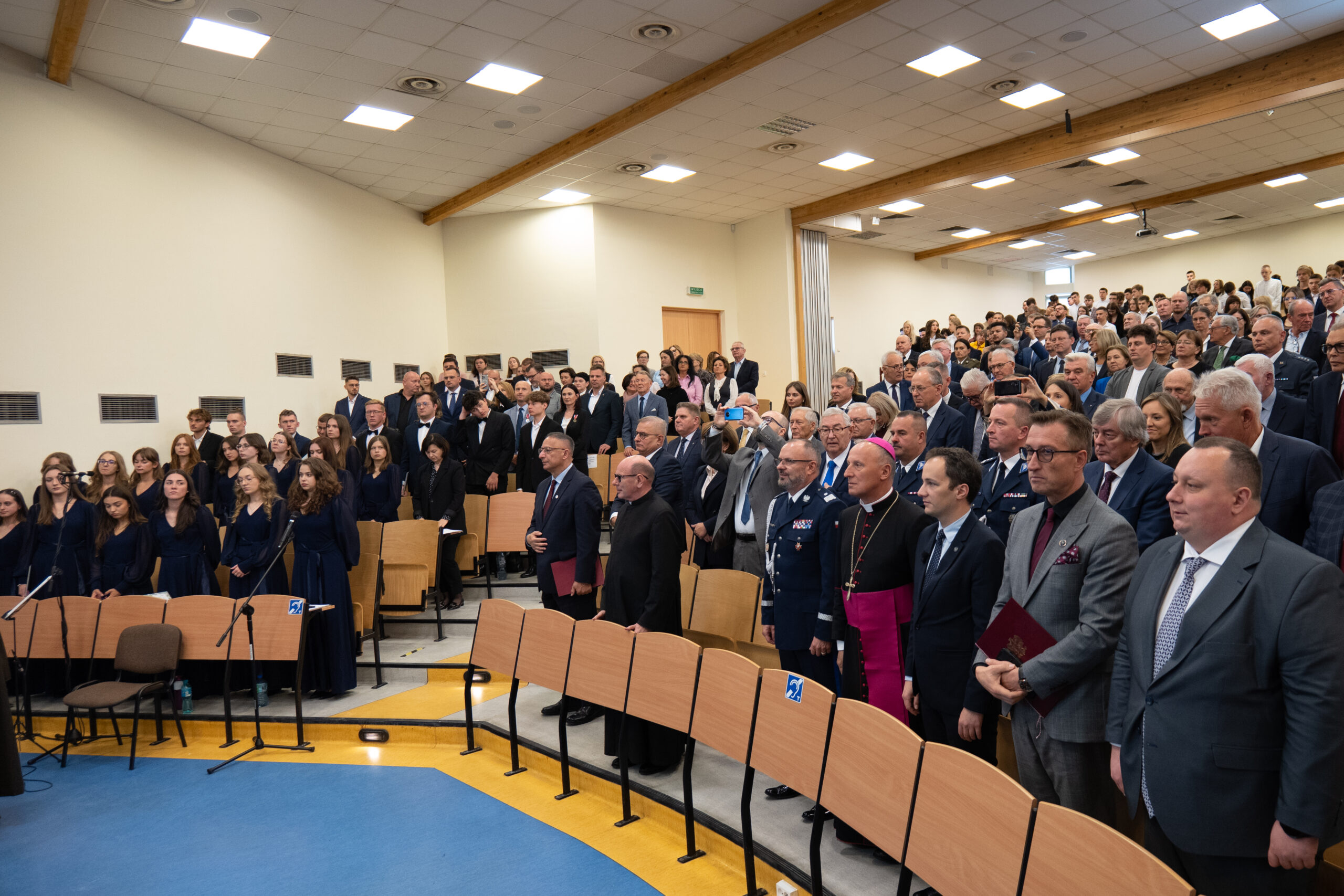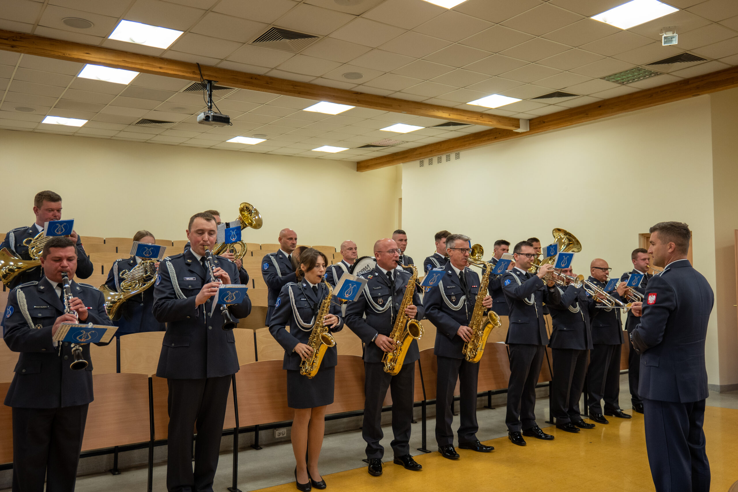 Jak corocznie uroczystość uświetnił występ chóru akademickiego pod kierownictwem pani Agnieszki Kobierskiej oraz orkiestry wojskowej.