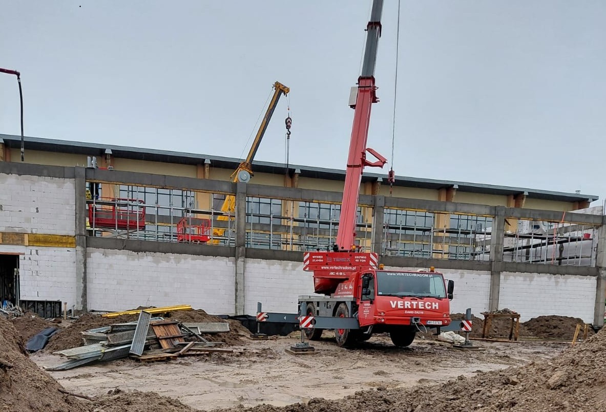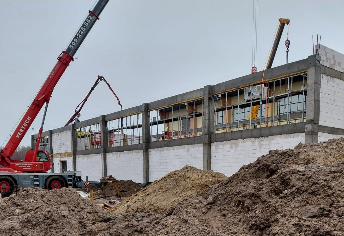 Inwestycja obejmuje także przebudowę południowej części istniejącej hali oraz dostosowanie całej hali do obowiązujących przepisów ppoż. Prace realizowane są na podstawie zawartej w dn. 14.11.2024 roku umowy z radomską firmą ARBUD INVESTMENT Sp. z o.o., a przewidywane zakończenie robót i oddanie budynku do użytkowania przewidziane jest na koniec sierpnia 2026 roku.