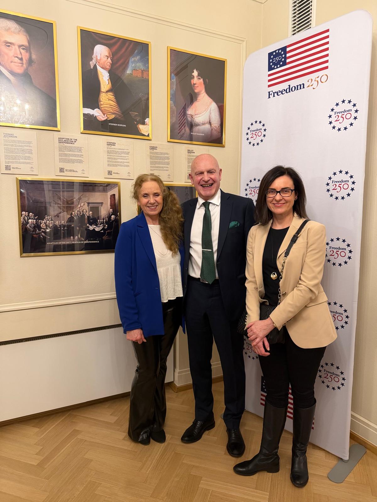 W dniu 11.02.2026 r. w Rezydencji Ambasadora USA w Warszawie odbyła się inauguracja obchodów 250. rocznicy podpisania Deklaracji Niepodległości Stanów Zjednoczonych, podczas której obecny był Ambasador Thomas Rose oraz Podsekretarz Stanu ds. Dyplomacji Publicznej Sarah Rogers. Wraz z szerokim gronem gości z całej Polski w jubileuszu uczestniczył JM Rektor prof. dr hab. Sławomir Bukowski, przedstawicielka Wydziału Filologiczno-Pedagogicznego dr Ewa Klęczaj-Siara oraz koordynatorka American Corner Radom Pani Urszula Malmon.