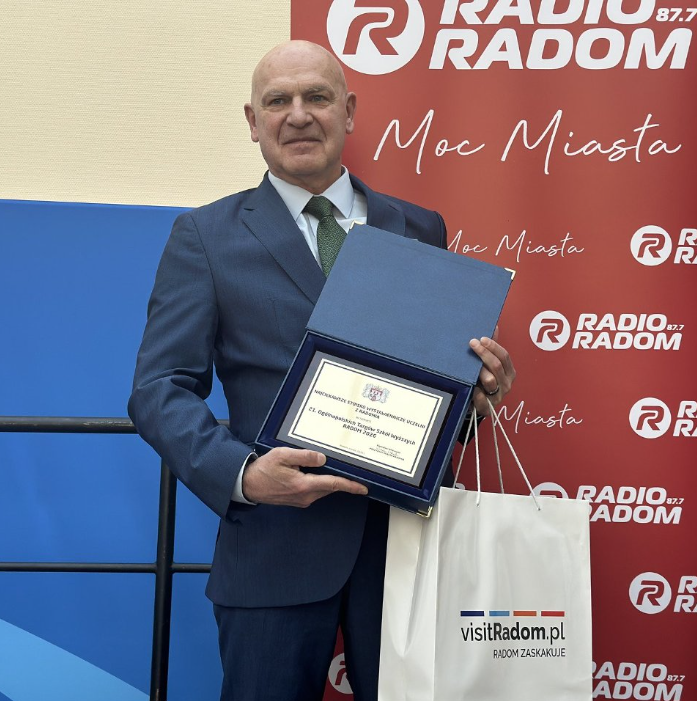 Na ręce JM Rektor Uniwersytetu Radomskiego, prof. dr hab. Sławomirowi Bukowskiemu została wręczona nagroda Prezydenta miasta Radomia za najciekawsze stoisko wystawiennicze uczelni z Radomia.