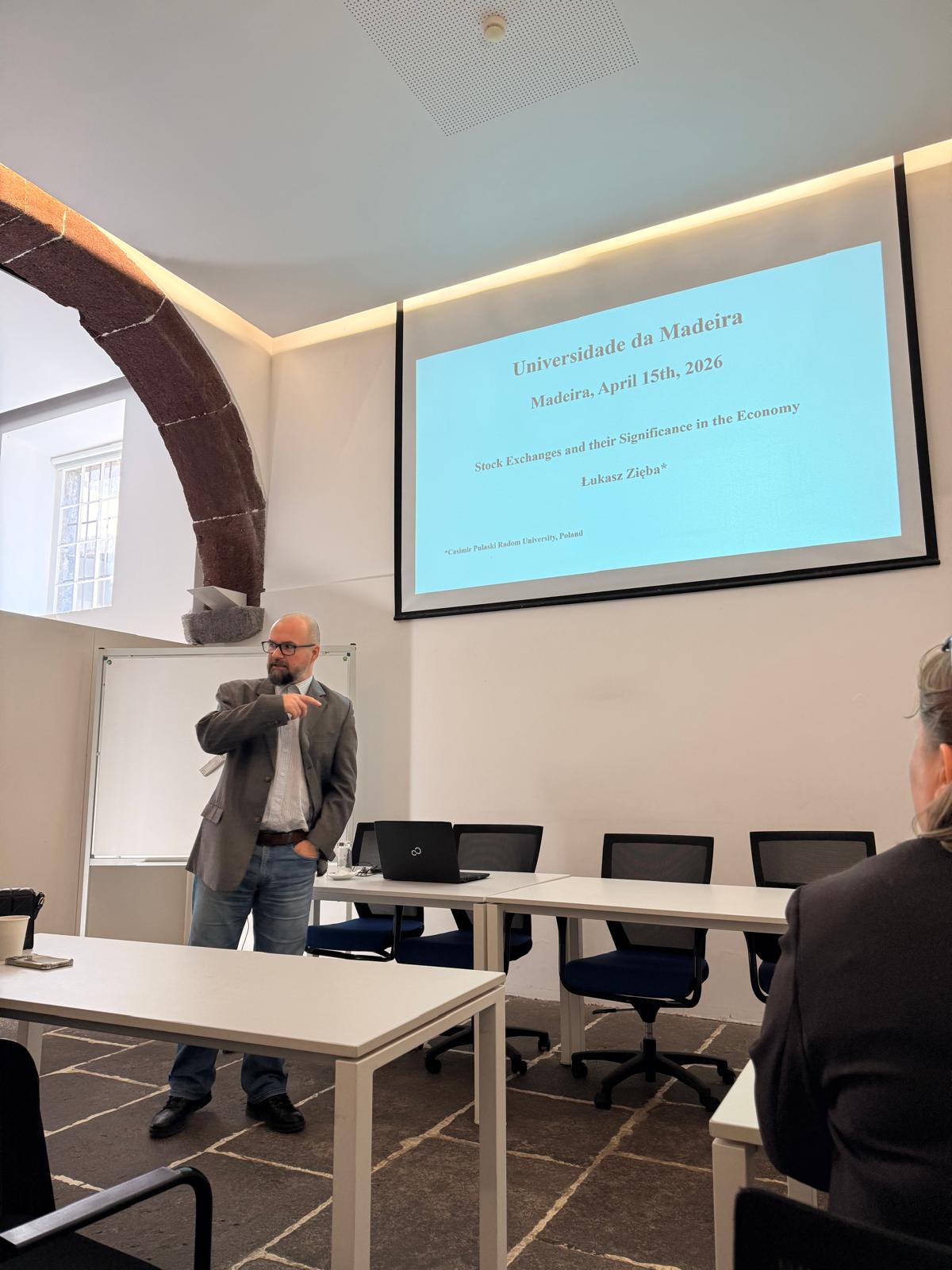 W dniach 13-17 kwietnia 2026 roku przedstawiciele URad: z Wydziału Ekonomii i Finansów: prof. dr hab. Sławomir Bukowski, prof. dr hab. Piotr Misztal, dr Joanna Bukowska, prof. URad., dr Izabela Młynarzewska – Borowiec, prof. URad., dr Łukasz Zięba, prof. URad.; z Wydziału Filologiczno – Pedagogicznego: dr Agata Buda, prof. URad. oraz Pani Aleksandra Kucharska, Przewodnicząca Uczelnianej Rady Samorządu Studenckiego, wzięli udział w Międzynarodowym Tygodniu Naukowym na Uniwersytecie Maderskim w Funchal dotyczącym zagadnień z zakresu Cultural Management. Podczas pobytu pracownicy URad. wygłosili wykłady eksperckie dotyczące ekonomii i zarządzania (WEiF) oraz house management w dziełach literatury brytyjskiej XIX wieku (WF-P), dla studentów m. in. z Łotwy i Włoch.