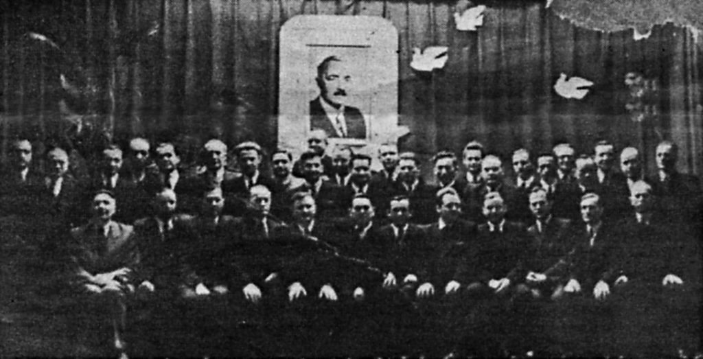Komisja Organizacyjna Wieczorowej Szkoły Inżynierskiej w Radomiu (1949r.). Od lewej siedzą: mgr inż. Eugeniusz Wasilewski – pierwszy rektor SI NOT i WSI, mgr inż. Stanisław Stupaczewski – dyrektor techniczny Zakładów Metalowych w Radomiu, mgr inż. Jerzy Dickman – dyrektpr naczelny Zakładów Metalowych w Radomiu, mgr inż. Tadeusz Wichert – drugi rektor WSI; stoją od lewej: Józef Adamski i Feliks Jastrzębski – sekretarze Komisji